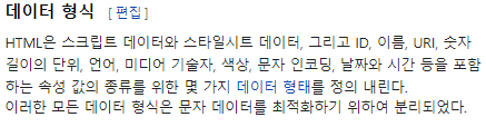 HTML은 스크립트 데이터와 스타일시트 데이터, 그리고 ID, 이름, URI, 숫자 길이의 단위, 언어, 미디어 기술자,