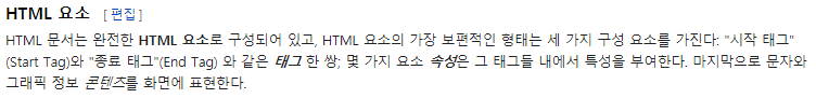 HTML 문서는 완전한 <strong>HTML 요소</strong>로 구성되어 있고, HTML 요소의 가장 보편적인 형태는 세 가지 구성